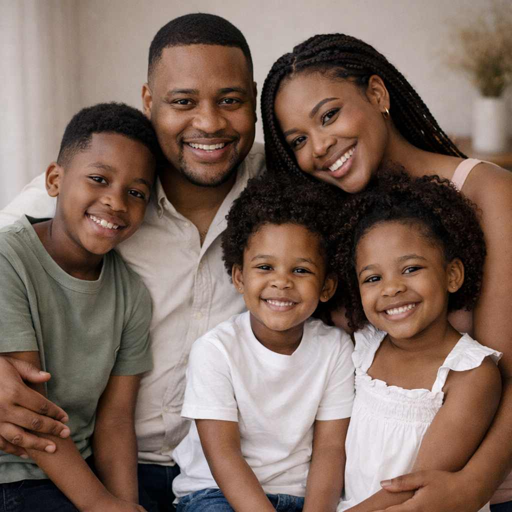 Family Studio Photography – warm, professional family portraits in a clean Midrand studio setup. Perfect for updated family photos, milestones, and memories you will actually print and frame.